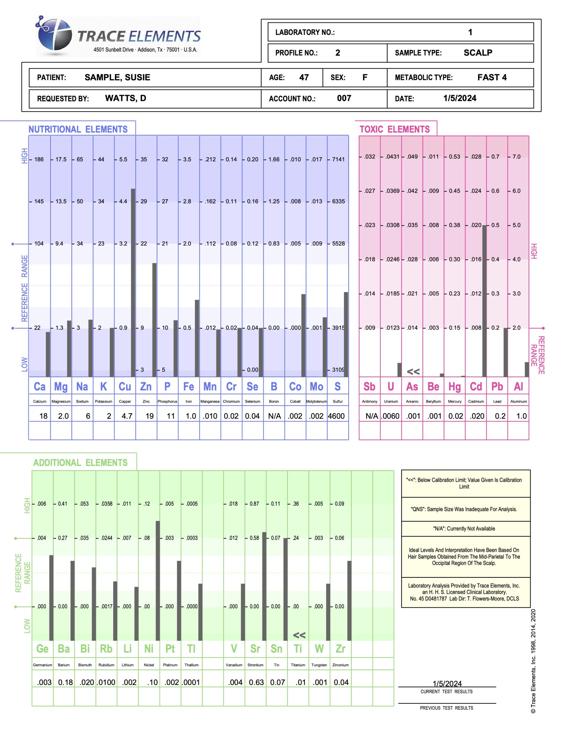 HTMA measures key minerals such as magnesium, potassium, sodium, calcium, zinc, and copper, as well as screening for toxic heavy metals like mercury, arsenic, cadmium, and aluminum.